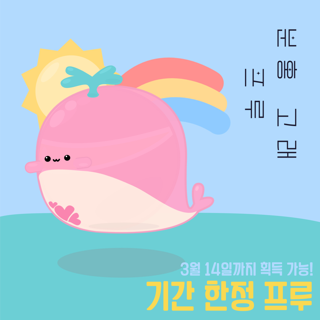 패션프루츠/이벤트 [종료] 분홍 고래 프루(23.02.15~23.03.14) 2023. 2. 15. 00:00 공유하기 게시글 관리 Planetfru 저작자표시 비영리 변경금지 (새창열림)
